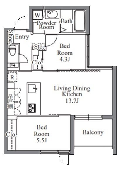 | 間取 | 1LDK ~ 2LDK | 面積 | 38.62㎡ ~ 53.69㎡ |
