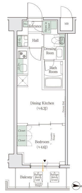 | 間取 | 1DK | 面積 | 26.32㎡ ~ 30.12㎡ |
