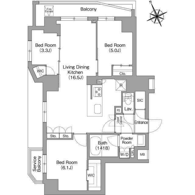 | 建物設備 | オートロック、エレベータ、宅配ボックス、駐輪場、バイク置場、ゴミ集積場、防犯カメラ | ||