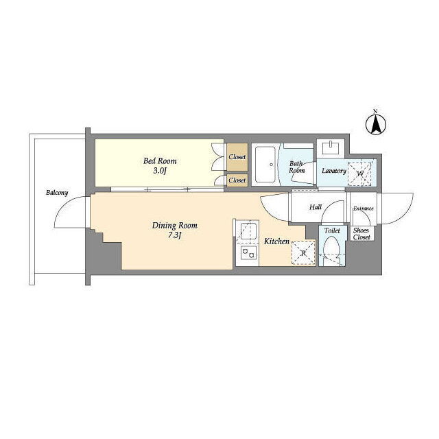 | 間取 | 1DK ~ 2K | 面積 | 25.88㎡ ~ 27㎡ |