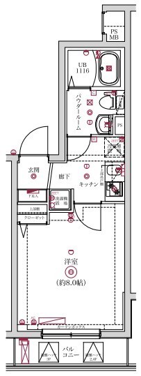 広さ25.74㎡のお部屋です。