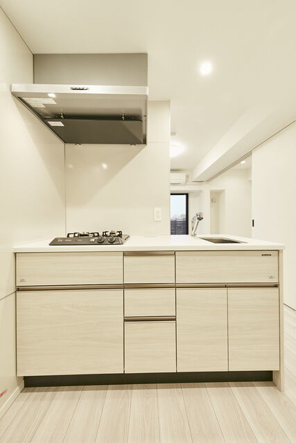 バス・トイレ別、ガスコンロ設置可、システムキッチン、追い焚き、ウォークインクローゼット、CSアンテナ、BSアンテナ、フローリング、光ファイバー、床暖房、TVインターホン、温水洗浄暖房便座、浴室換気乾燥機、独立洗面台 |