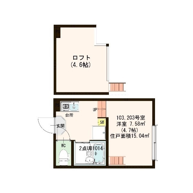 敷金0ヶ月、 東向き、 広さ15.04㎡のお部屋です。 更新日:2026-02-02 |
