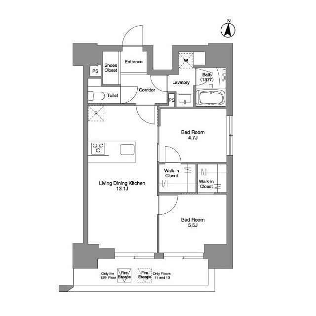| 建物階数 | 地上13階 | 部屋階数 | 12階 |