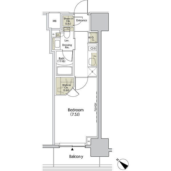 広さ25.79㎡のお部屋です。