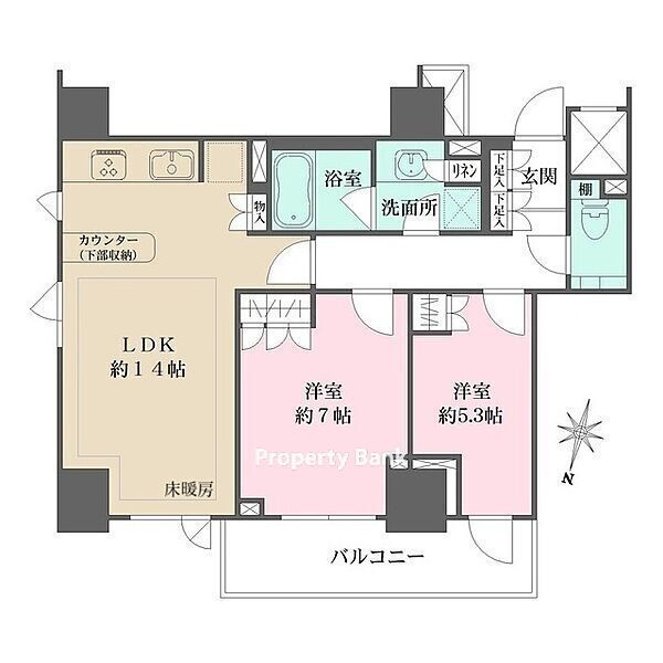 | 部屋設備 | 分譲賃貸、角部屋、バス・トイレ別、ガスコンロ設置可、システムキッチン、追い焚き、CATV、CSアンテナ、BSアンテナ、フローリング、光ファイバー、床暖房、TVインターホン、温水洗浄暖房便座、浴室換気乾燥機、独立洗面台、食器洗い乾燥機 | ||